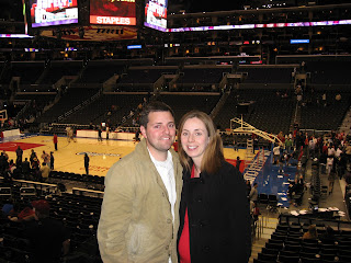 Here's us after the game...I was a bit sleepy by this time. I probably did more people watching than game watching but I had a good time. Happy Valentine's Day!
